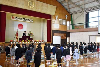 注:今年度の入学式は、新型コロナウィルス対策上、従来と違って来賓者や上級生なしの式典となった。そのため、このページも、そのような内容になっていることは、あらかじめ、ご了承願いたい。(出席者全員がマスク姿だった)