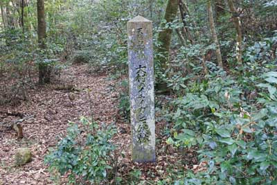 (写真1) 中央部は大村のイチイガシ天然林の案内板、右側は天然記念物指定の標柱。 (大村市雄ケ原町) | ||||||||||||