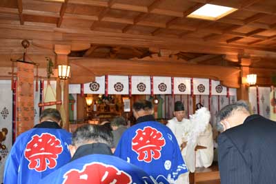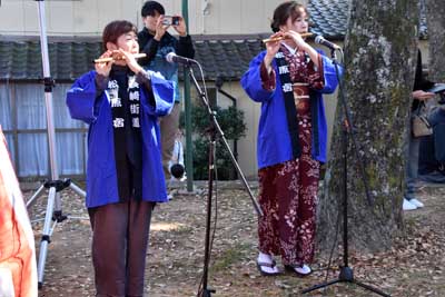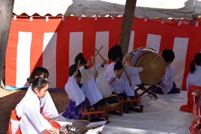 | (写真1) 松原くんち、浦安の舞の上演 (松原八幡神社の相撲場にて、以下同様) | ||||||||||||||||||